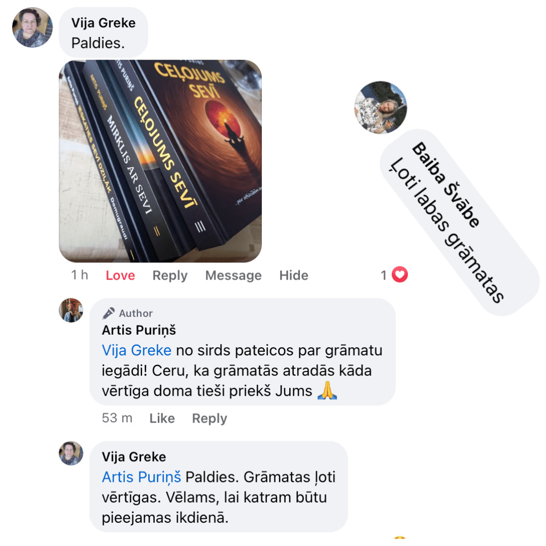 Arta Puriņa grāmata ”Ceļojums sevī” Dzīve runā caur cilvēkiem. Neviens cilvēks mūsu dzīvē nav nejaušība. Neviens. Mēs visi esam saistīti. Katram sava loma. Katram savs uzdevums. Atliek tikai ieklausīties un mācīties iztulkot, ko patiesībā ārpasaule cenšas atspoguļot tajā, kas notiek dziļi sevī katrā no mums…