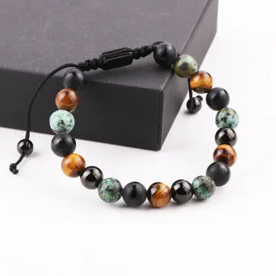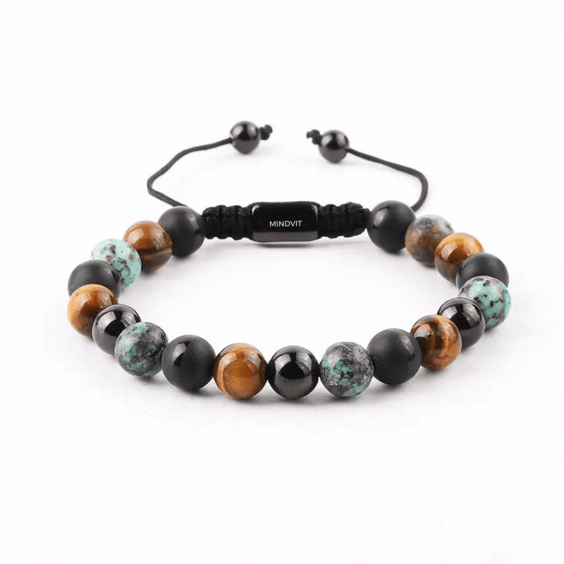 Jaudīga Mindvit zīmola dabīgo akmeņu aproce vīrišiem! Rūpīgi rokām darināta no melnā ahāta, āfrikas tirkīza un tīģeracs akmeņiem. Aproce vīriešiem, kuri ir ceļā uz savu labāko šīs dzīves versiju!